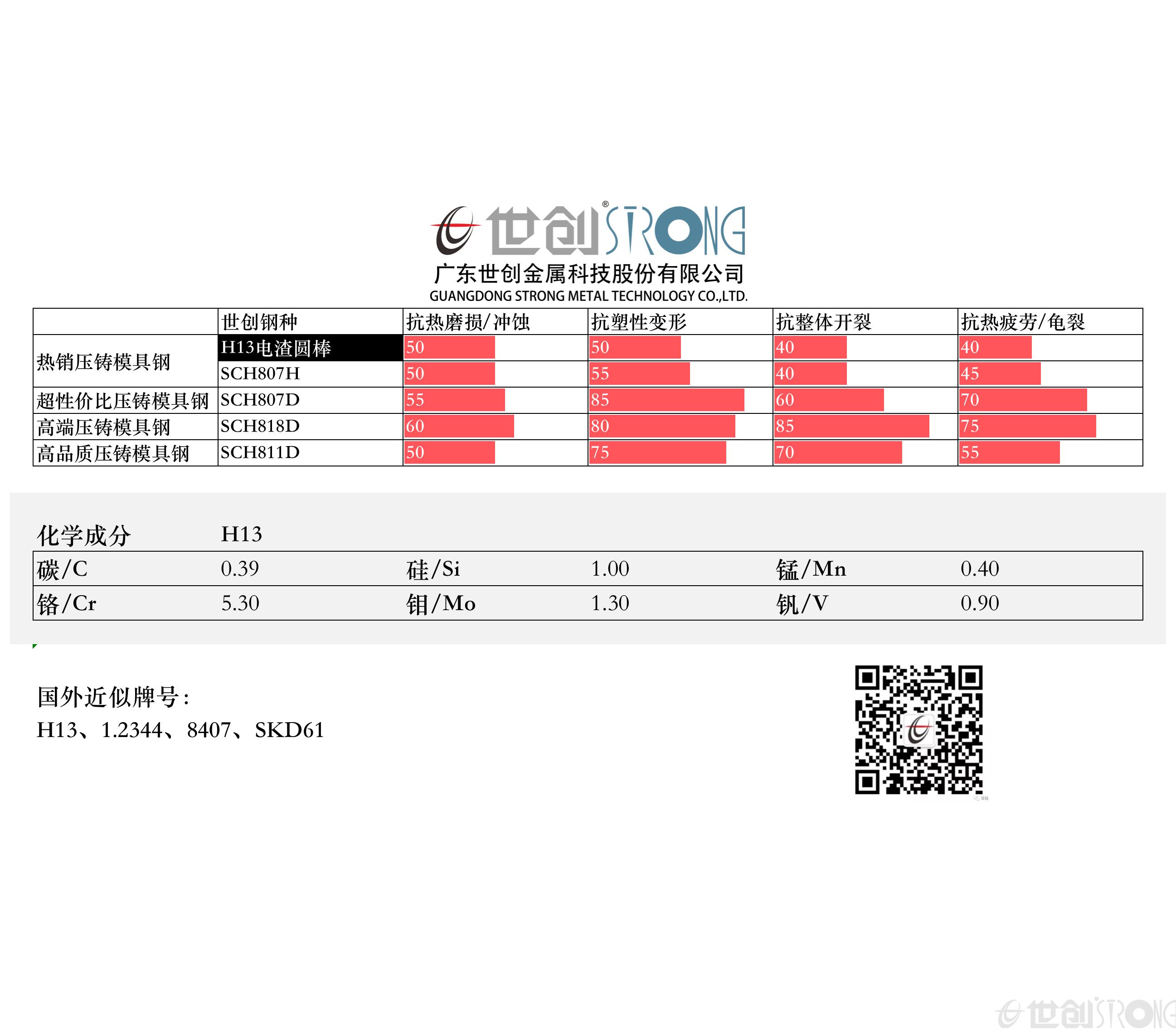 国外近似牌号:H13、1.2344、8407、SKD61